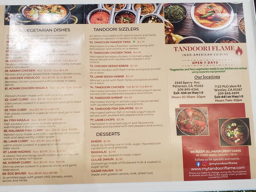 Welcome to **Tandoori Flame**, a delightful culinary find nestled in Patterson, California, at 2345 Sperry Ave. This charming establishment has quickly earned a loyal following, thanks to its authentic Indian cuisine and inviting atmosphere.